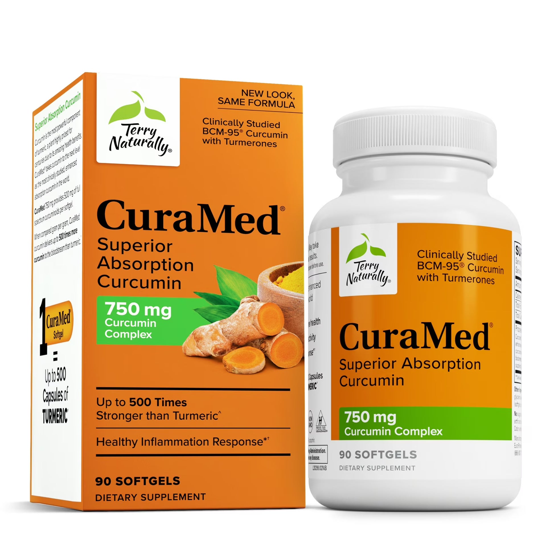 Terry Naturally CuraMed 750 mg - Antioxidant Supplement for Brain & Heart Health Support - Supplement with High-Potency Curcumin Complex - Kidney, Liver & Immune Health Support - 120 Softgels (1 Pack)
